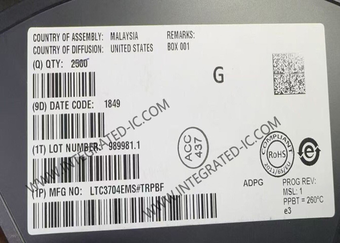 IC Sirkuit Terpadu LTC3704EMS Pengontrol DC DC Positif Ke Negatif MSOP10